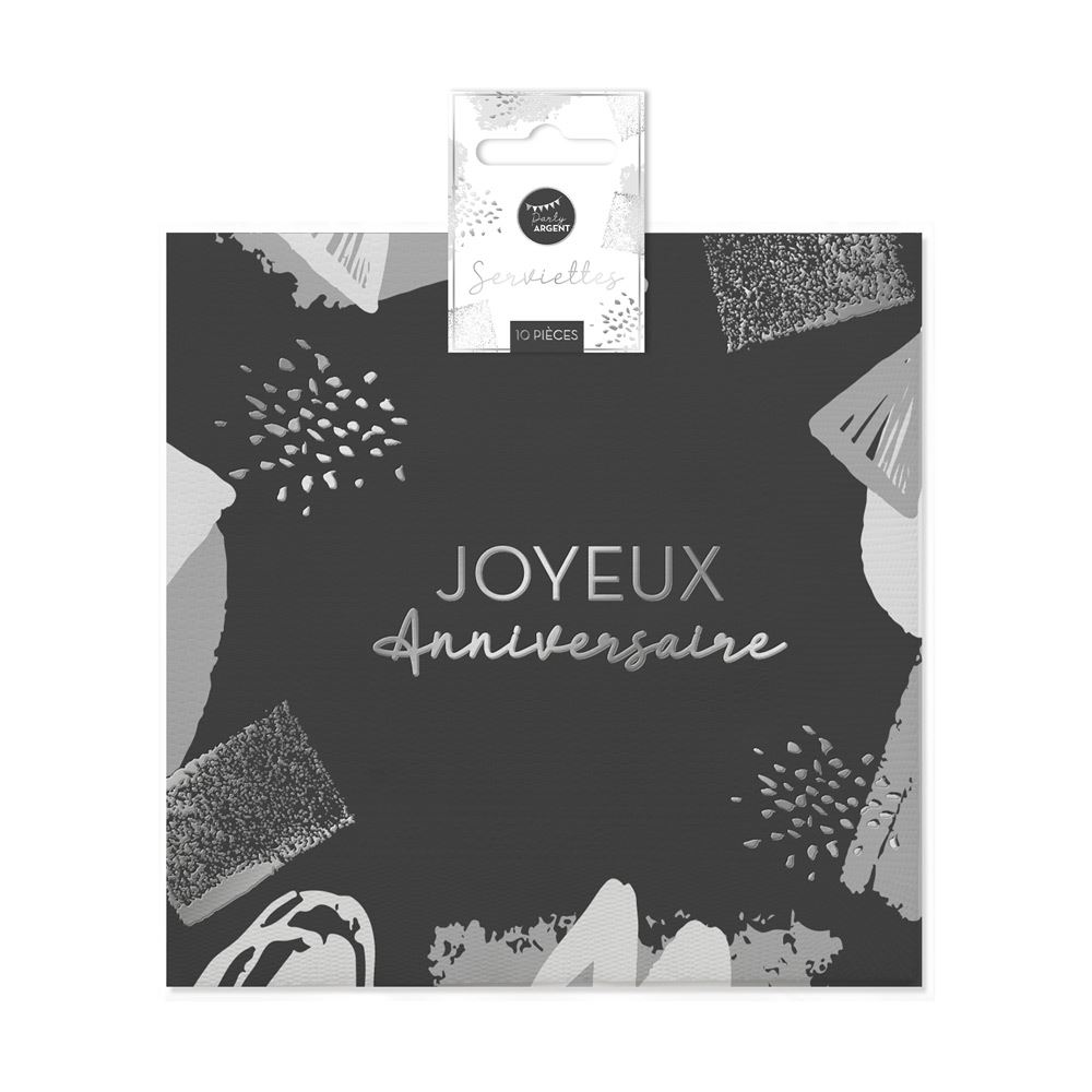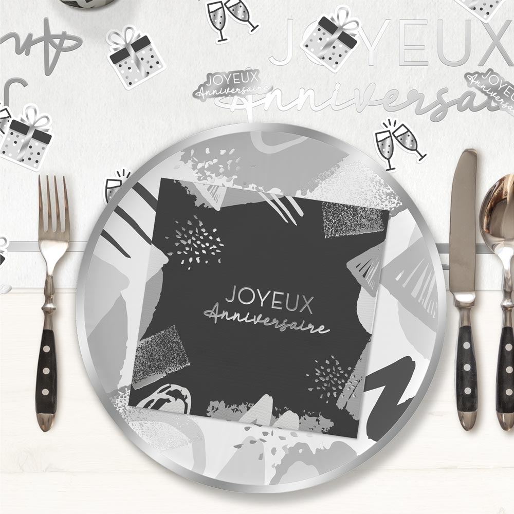 Complétez votre décoration de table avec élégance grâce à notre pack de serviettes Party Argent « Joyeux Anniversaire ». Ces serviettes en gris foncé présentent un motif déstructuré en gris avec la mention « Joyeux Anniversaire » au centre, également en gris. Parfaites pour ajouter une touche sophistiquée à votre table d’anniversaire.
