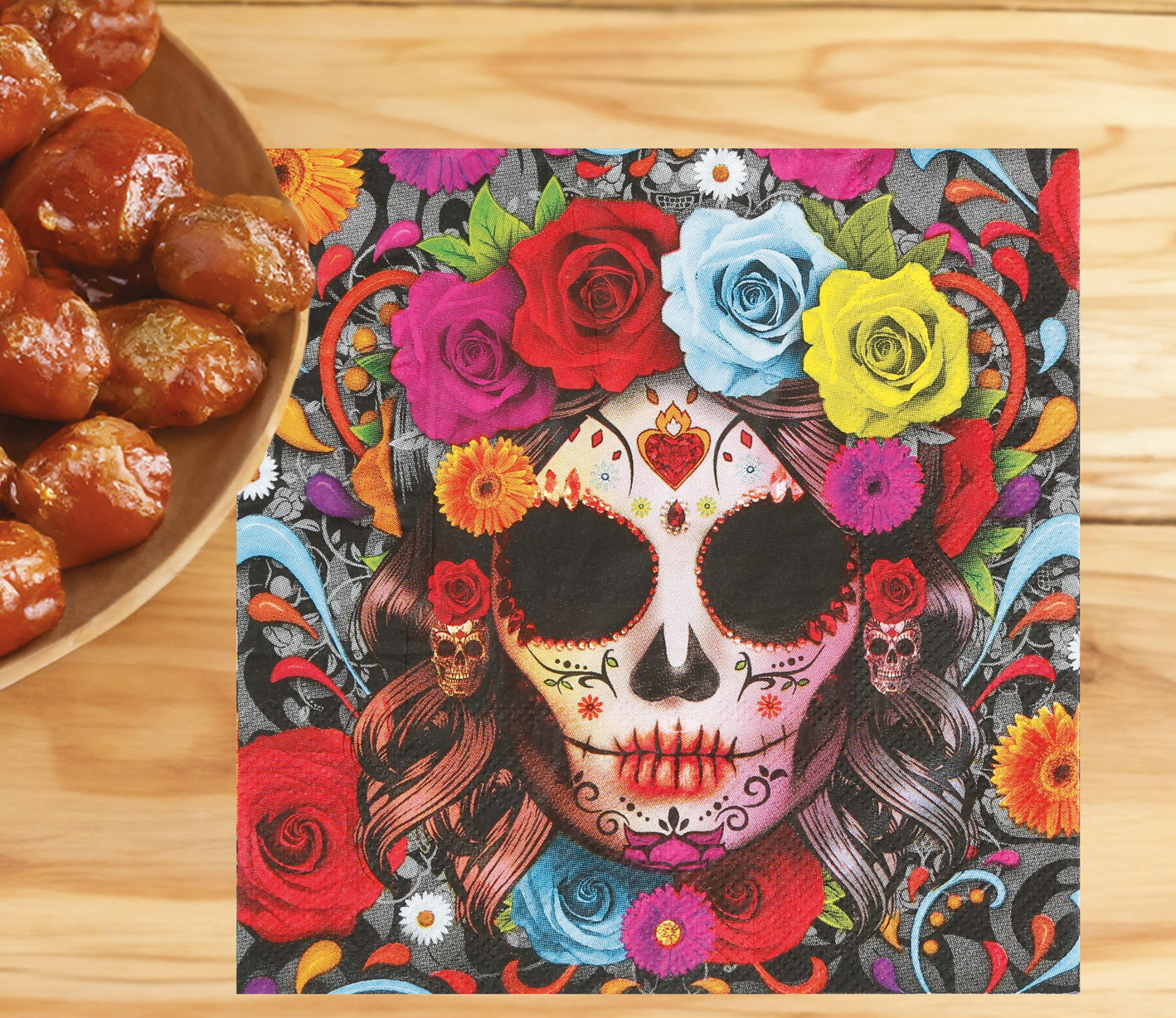 Les Serviettes Festives et Colorées pour le Dia de Muertos ! Ces 20 Serviettes « Catrina » sont parfaites pour célébrer le Dia de Muertos (Jour des Morts mexicain) ou pour apporter une touche vibrante et culturelle à une fête d’Halloween ou à thème.