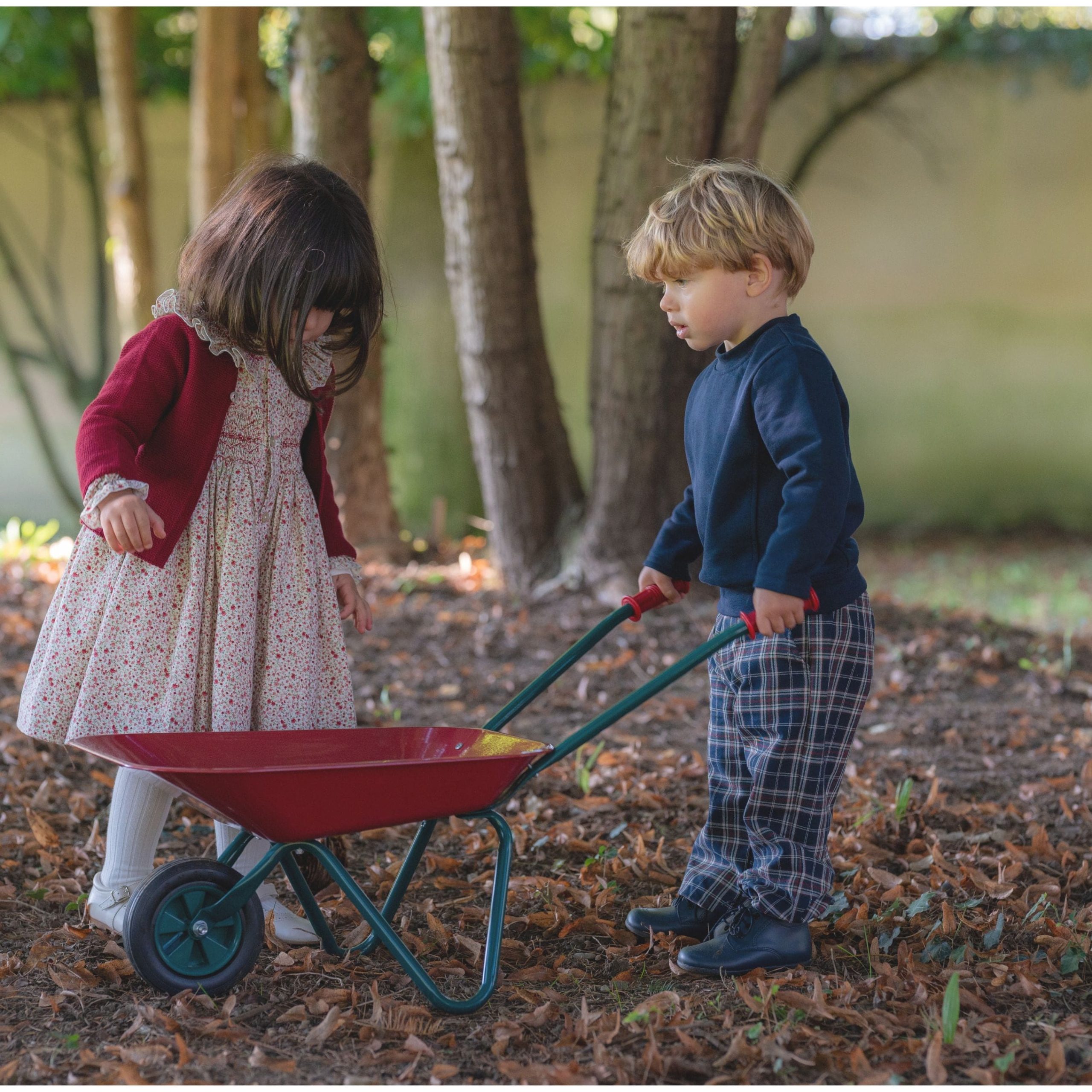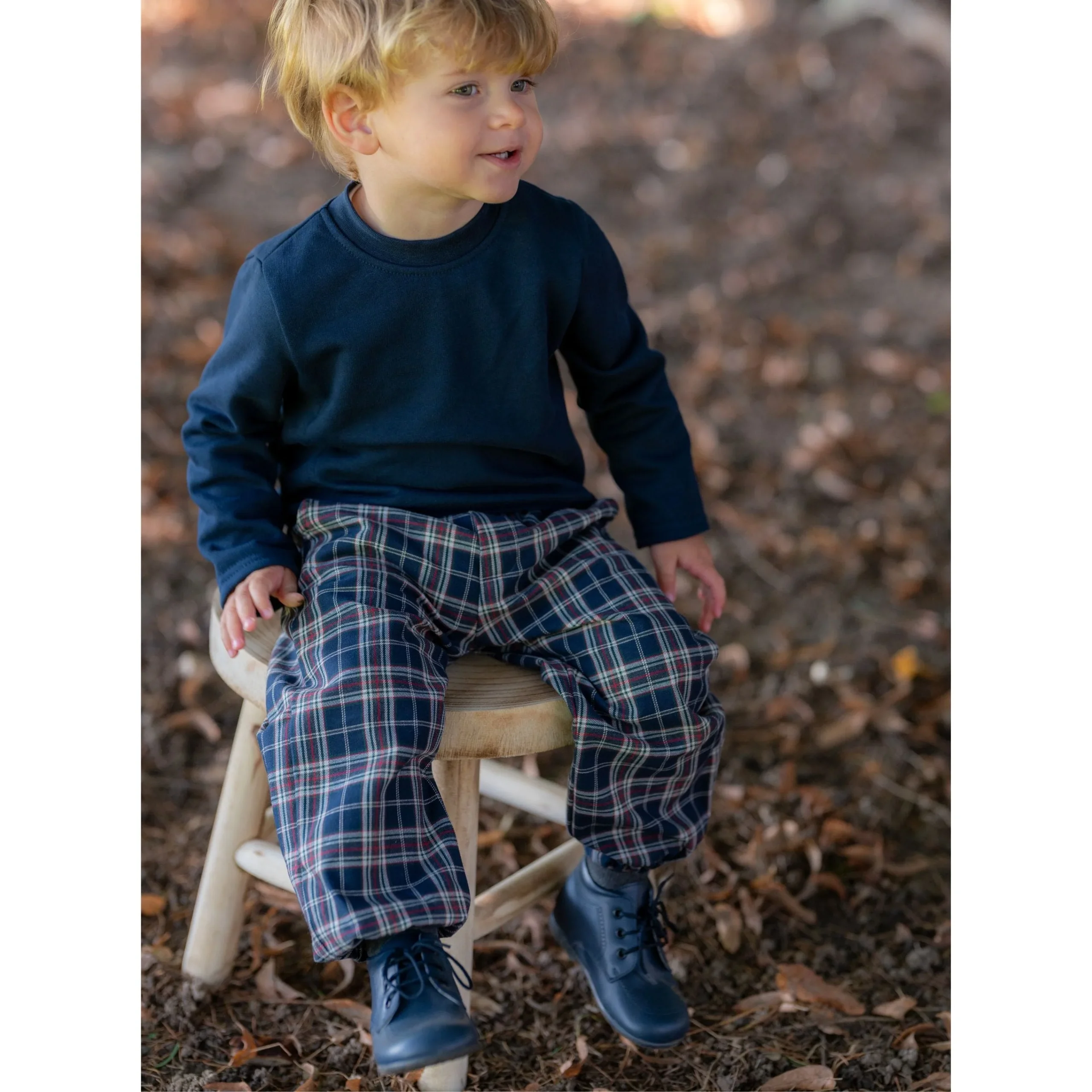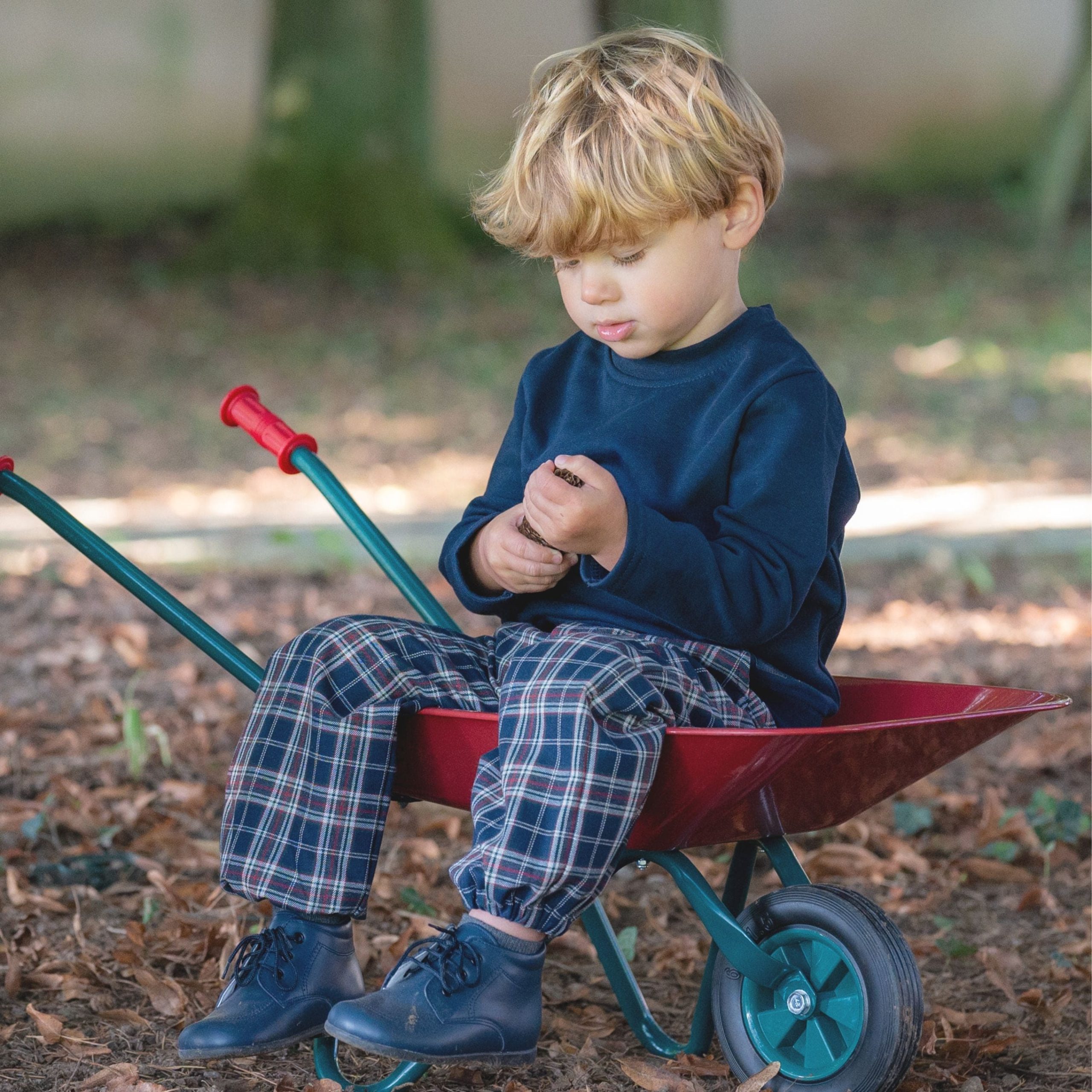 Navy blue sweater for baby boys made in soft organic cotton sweatshirt jersey. Ribbed panels down the sides and navy blue leather logo. Complete the look with the matching pants Greg available in blue and burgundy check flannel. 100% Organic Cotton White leather logo Machine wash (30°) Made in France