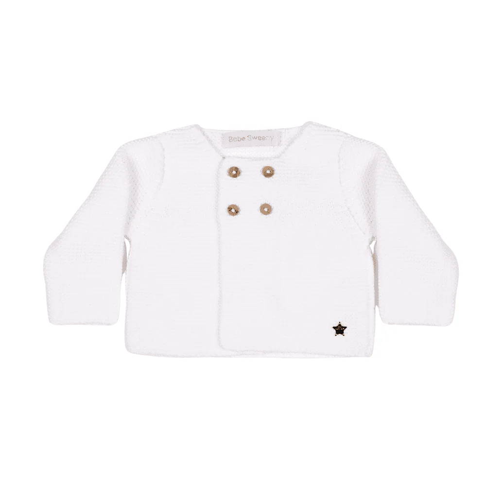 Baby White Organic Cotton Knit Cardigan
