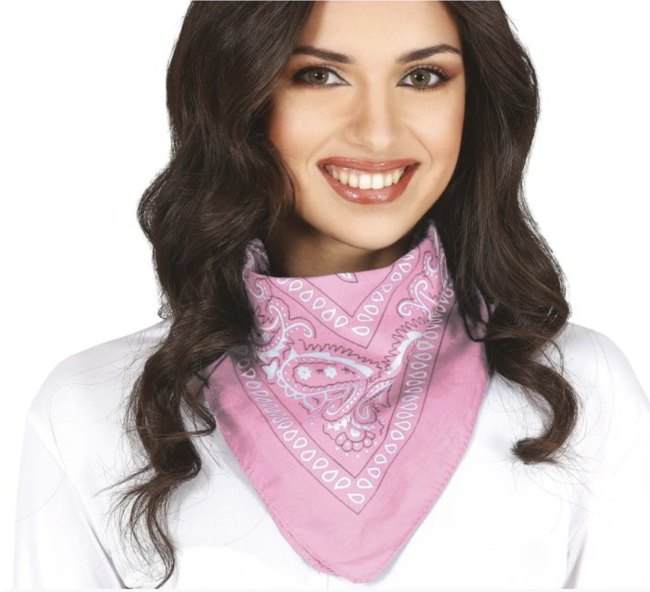 L’accessoire indispensable pour un déguisement de cowgirl ! Apportez une touche de style à votre tenue avec ce bandana rose, parfait pour compléter un déguisement de cowgirl ou pour ajouter une note originale à une soirée à thème western. Avec ses dimensions de 54 x 54 cm, il peut être porté de multiples façons : autour du cou, sur la tête ou comme accessoire de sac.