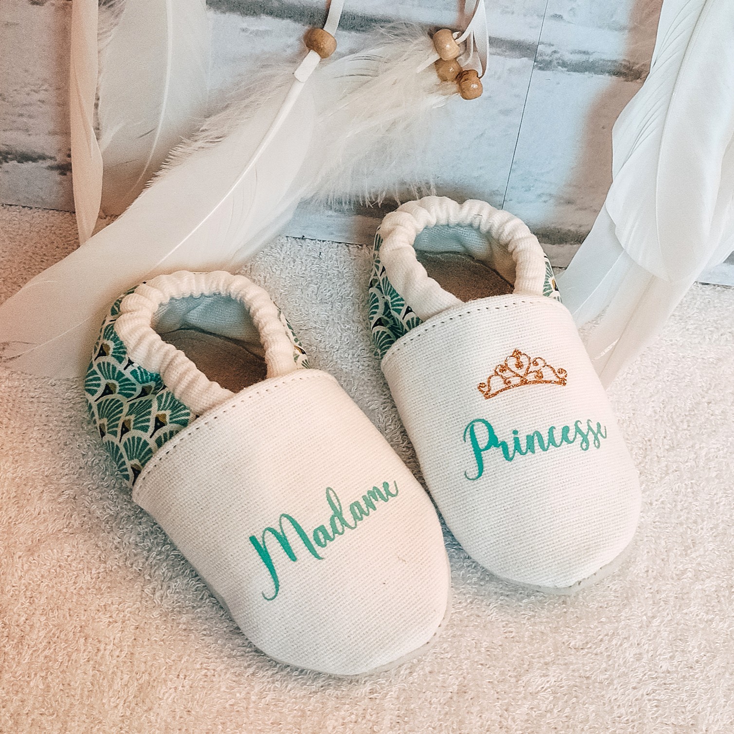 Nos créations artisanales sont fabriquées à la demande, en coton, selon les motifs de personnalisation choisis.