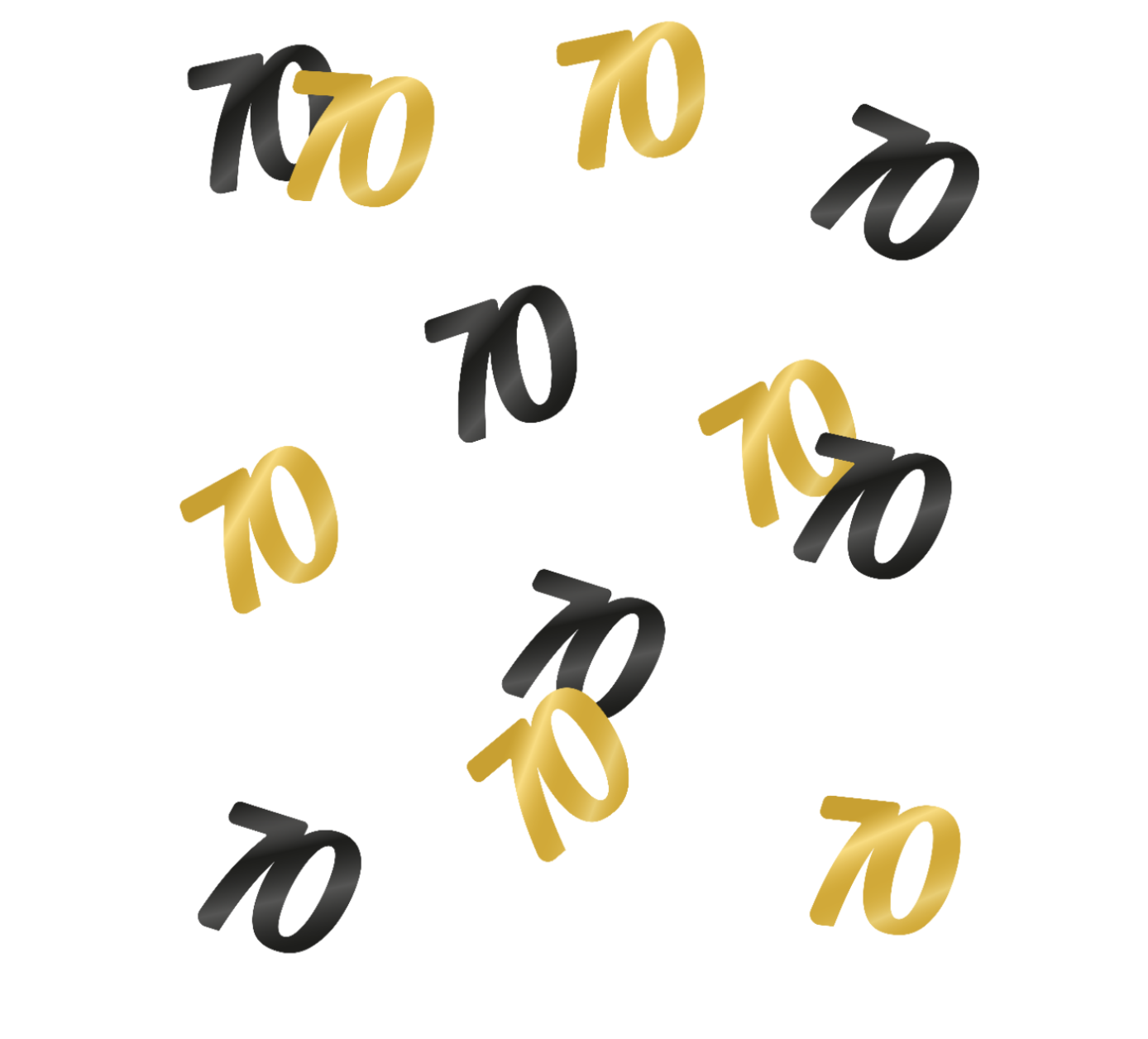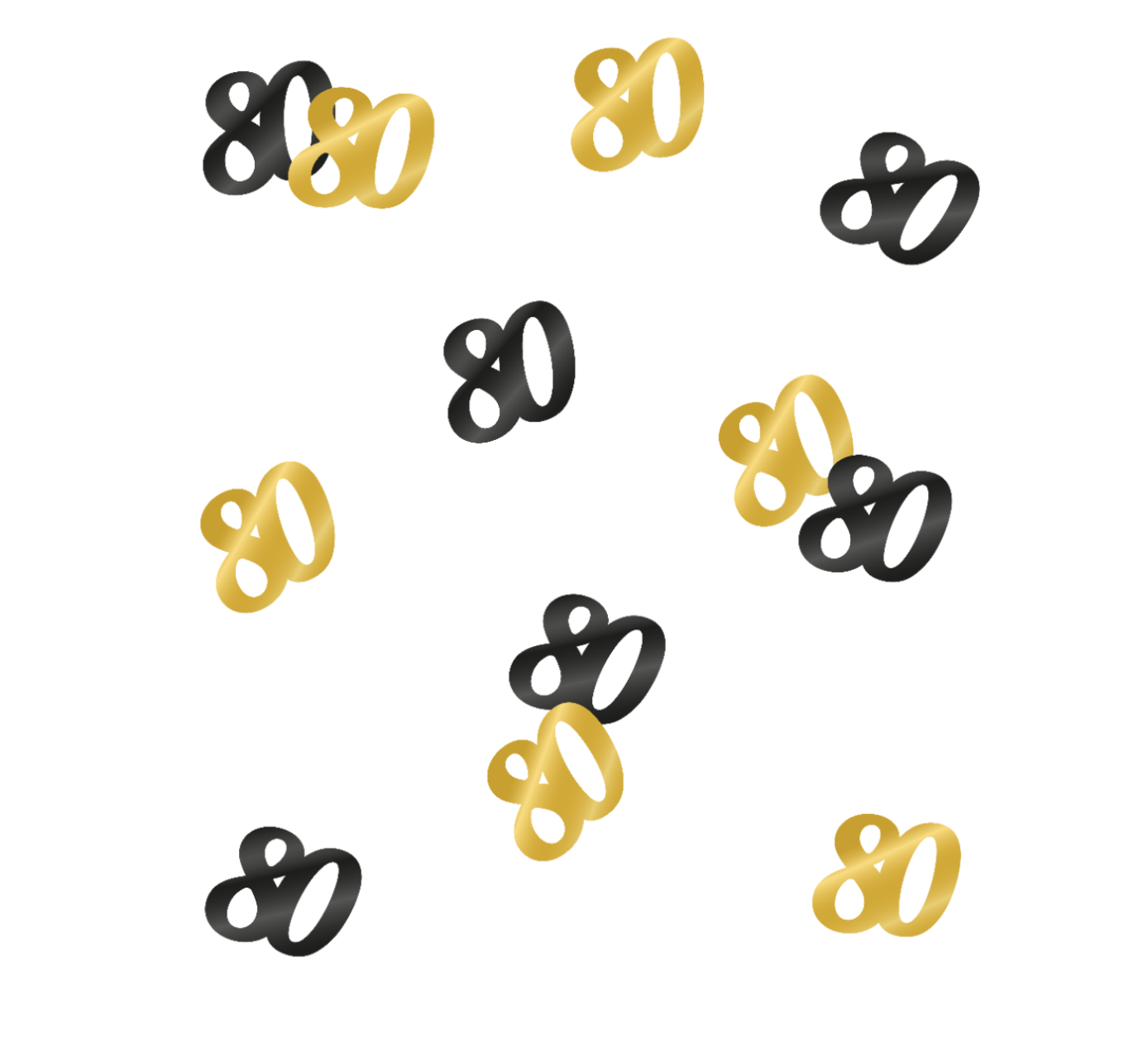 - Design : Mélange de confettis ronds, étoiles, et chiffres de l’âge (noir et doré).