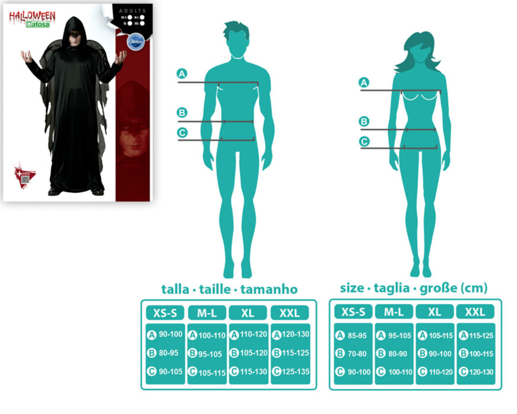Contenu : Tunique noire avec capuche, ailes noires imposantes.
