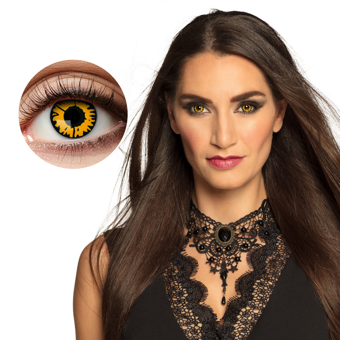 Éveillez la créature surnaturelle en vous avec les lentilles Twilight pour Halloween ! Les lentilles de contact Twilight mêlent les teintes orange éclatant et noir profond pour un regard à la fois captivant et mystérieux, idéal pour incarner un vampire, un loup-garou ou une créature fantastique. Leur design évoque des yeux perçants et surnaturels, parfait pour un déguisement inspiré de l’univers des créatures nocturnes et puissantes. Avec une durée d’utilisation d’une semaine, ces lentilles sont conçues pour être l’accessoire incontournable de votre déguisement d’Halloween.