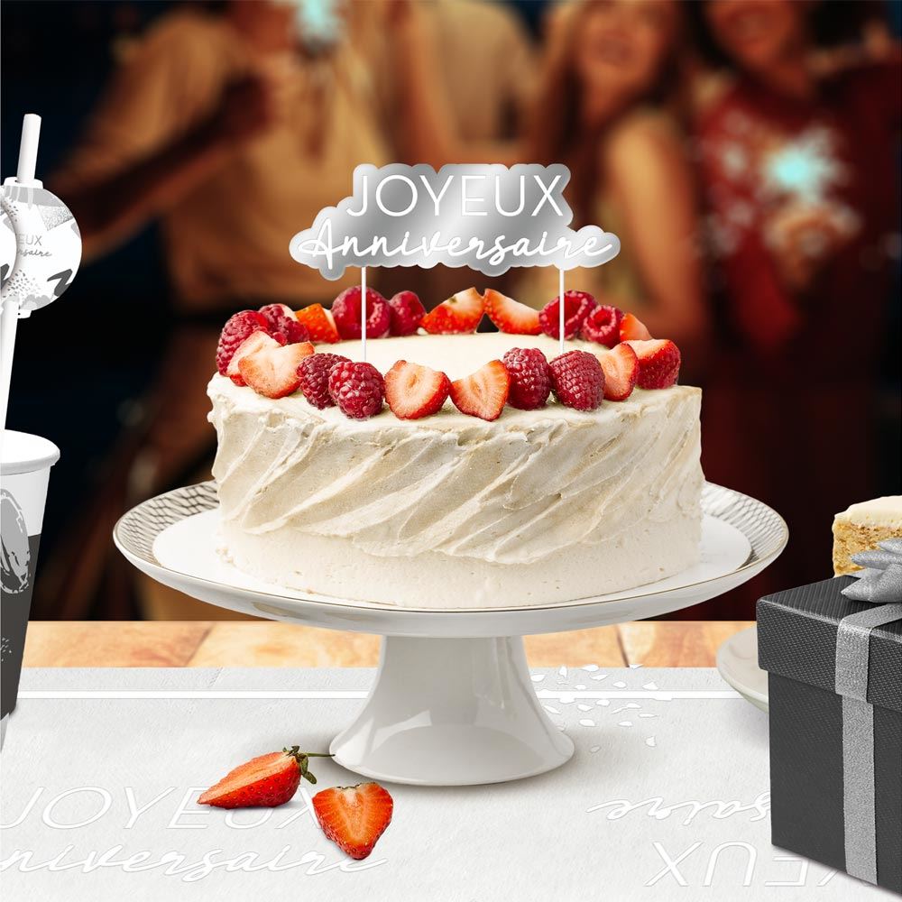 TOP GATEAU ANNIVERSAIRE ARGENT